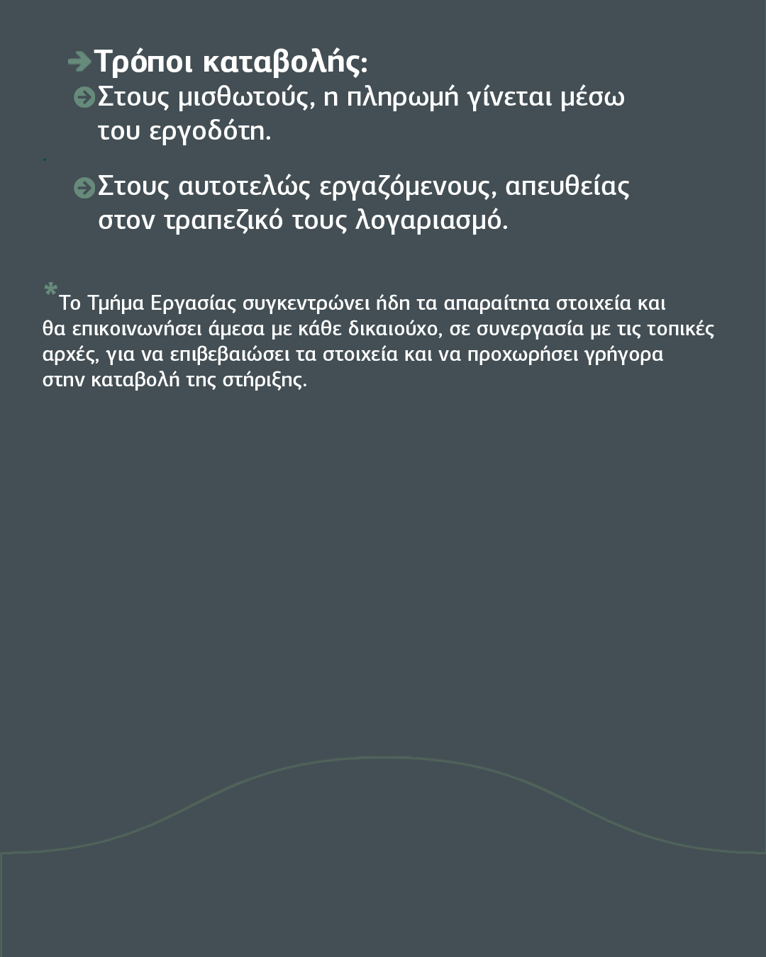 - Στους αυτοτελώς εργαζόμενους, απευθείας στον τραπεζικό τους λογαριασμό.