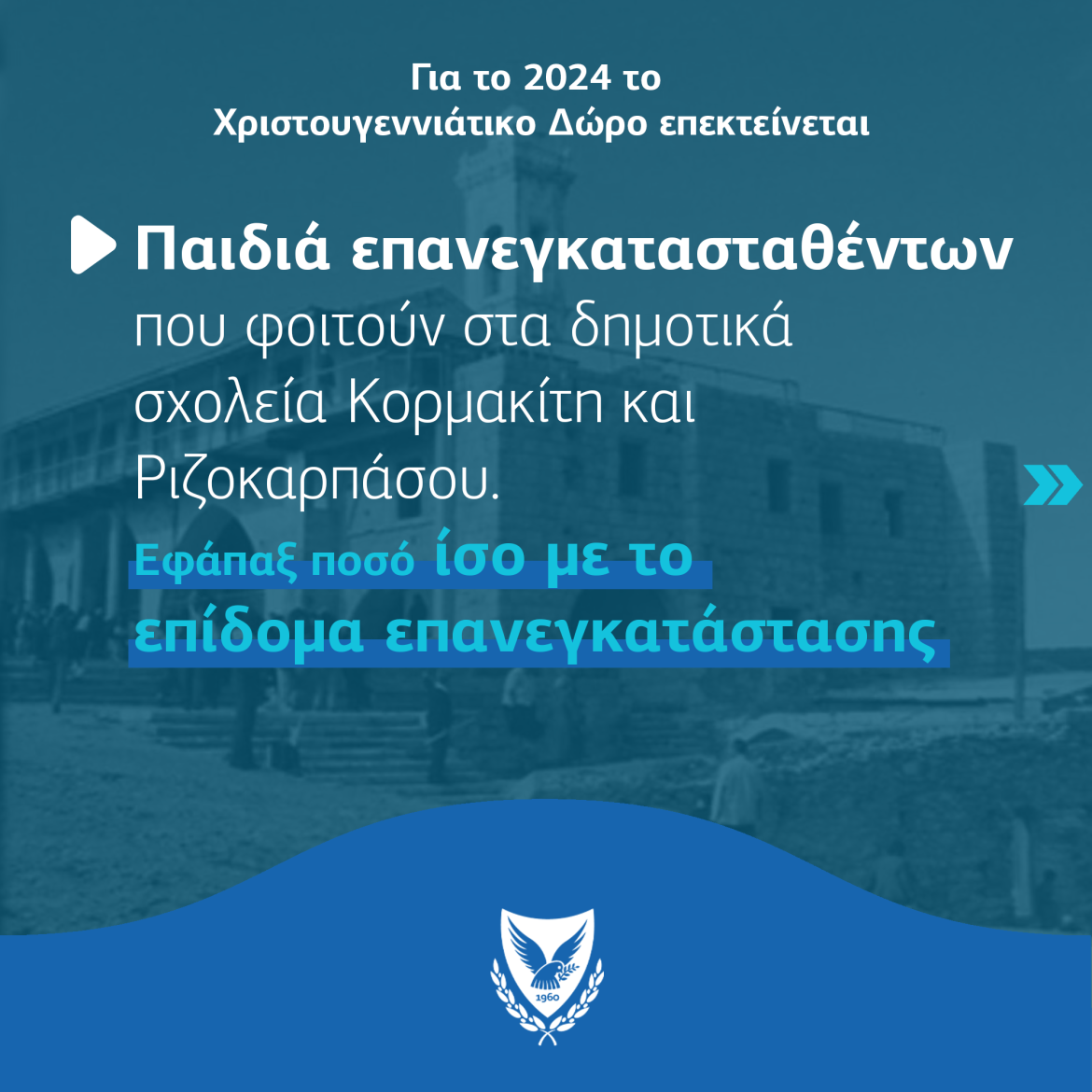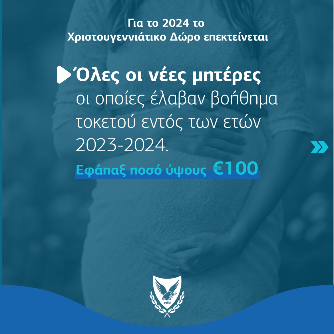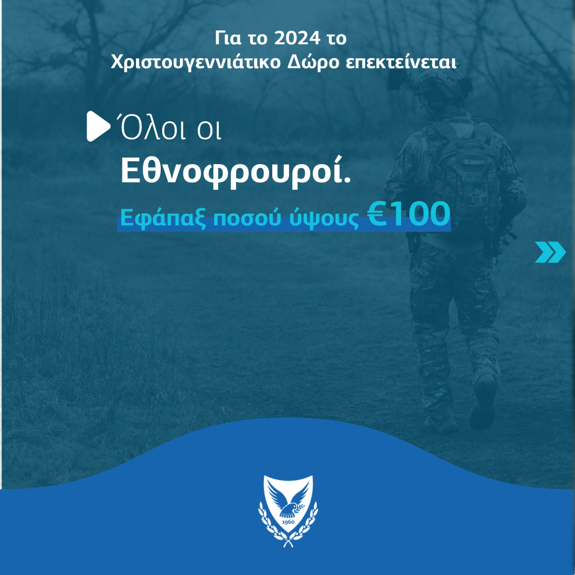 Η Κυβέρνηση, υλοποιώντας τις δεσμεύσεις της στο πλαίσιο του προγράμματος διακυβέρνησης του Προέδρου Νίκου Χριστοδουλίδη, προχωρά στην παραχώρηση έκτακτου χριστουγεννιάτικου δώρου για το 2024, εστιάζοντας στην ουσιαστική στήριξη των πιο ευάλωτων ομάδων του πληθυσμού.