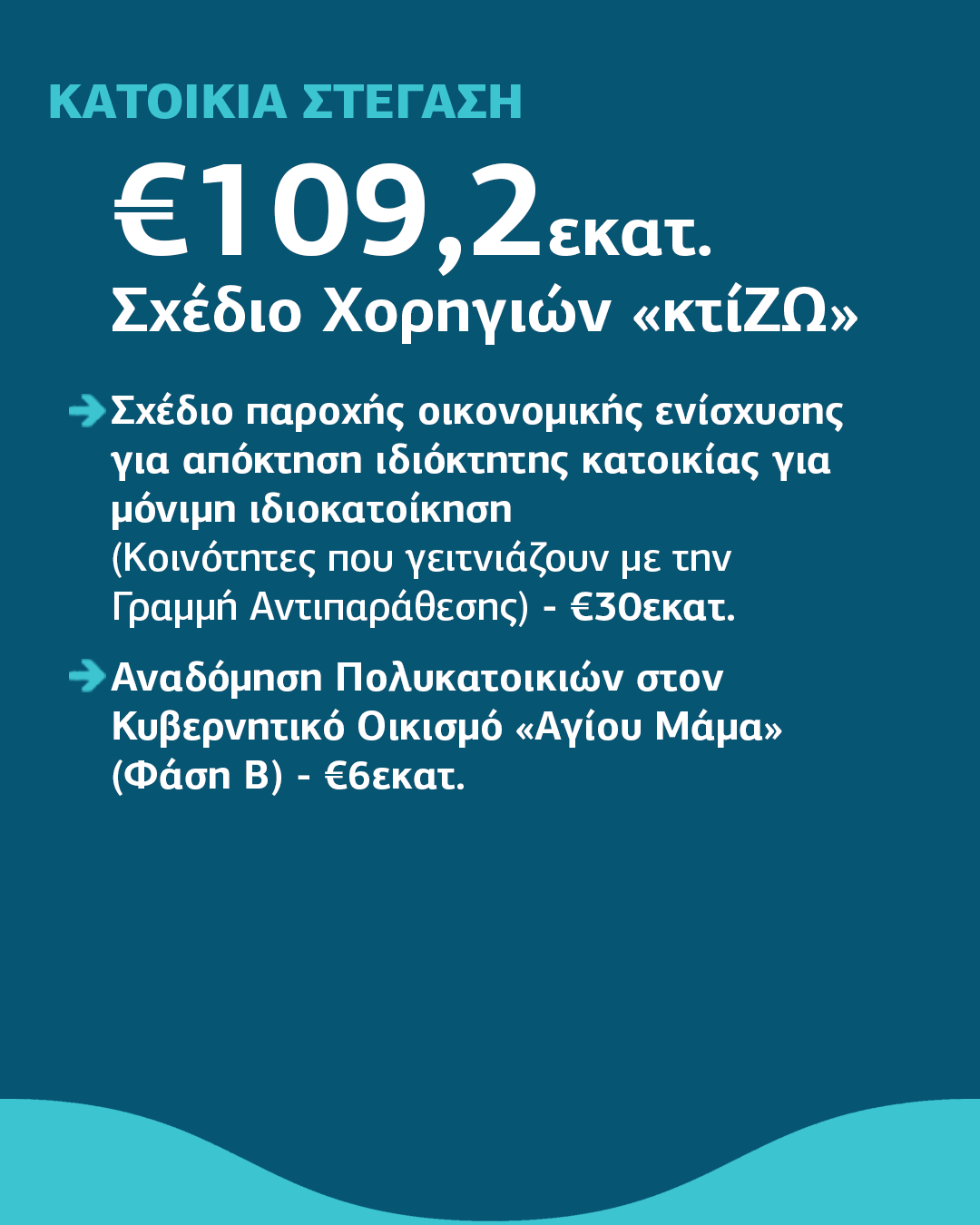• Ολοκληρωμένη στεγαστική πολιτική με κρατικές χορηγίες έως και €70.000 για απόκτηση πρώτης κατοικίας