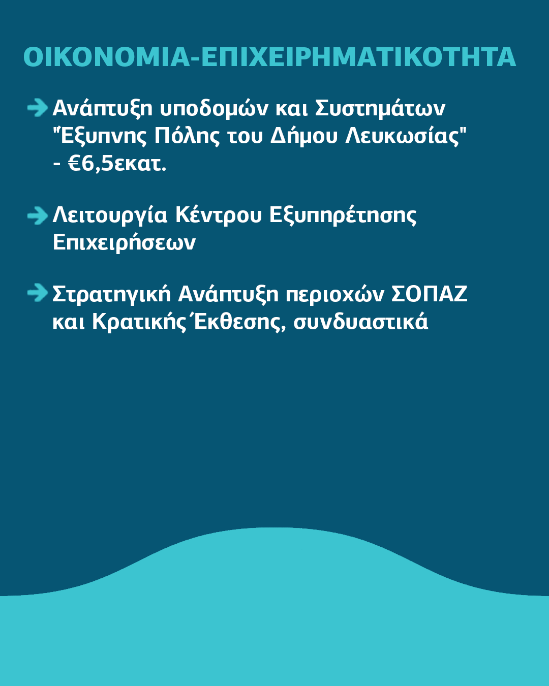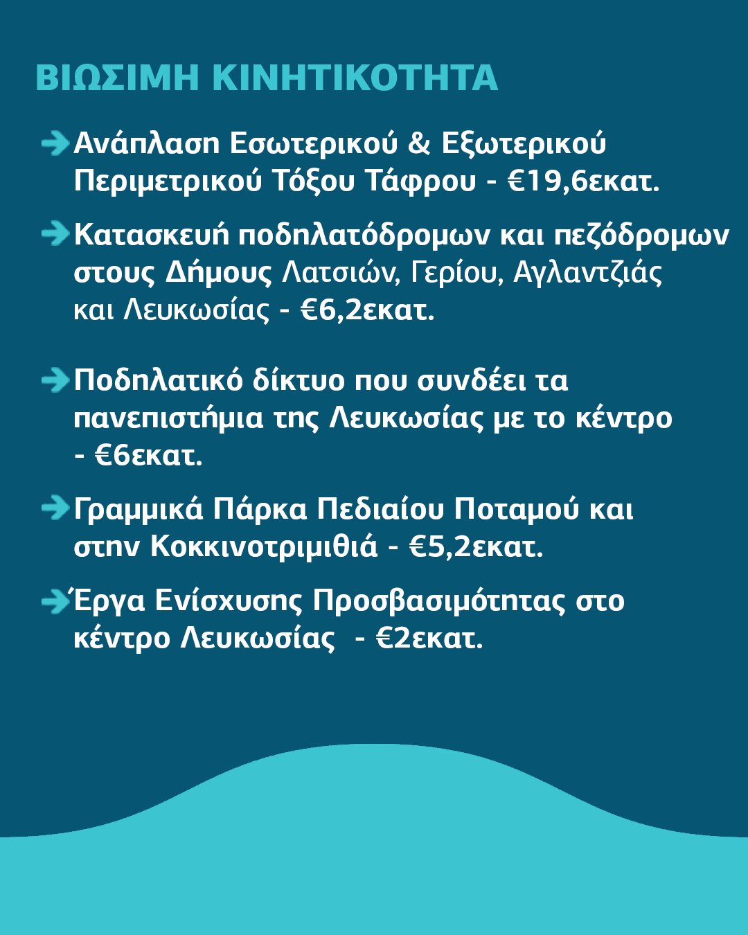 - Smart City Λευκωσίας (€6,5 εκατ. + 28,5 εκατ.)