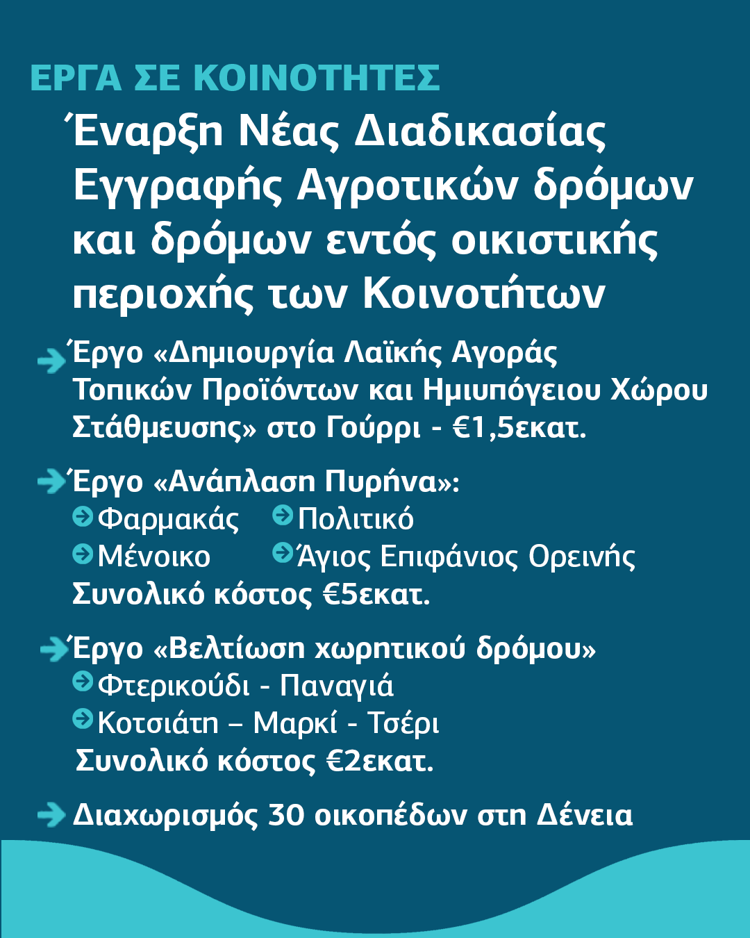 • Έργα ανάπλασης σε Άλωνα, Φαρμακά, Πολιτικό, Άγιο Επιφάνειο, Ιδάλιο