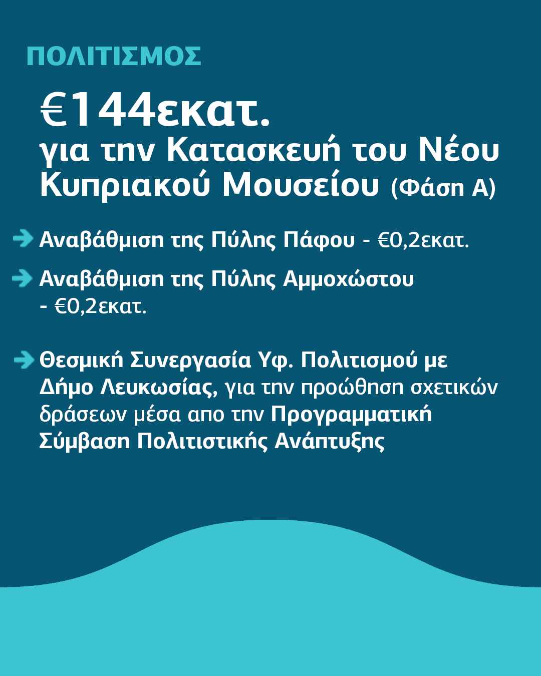 • Ανέγερση νέου Αρχαιολογικού Μουσείου (€144 εκατ.)
