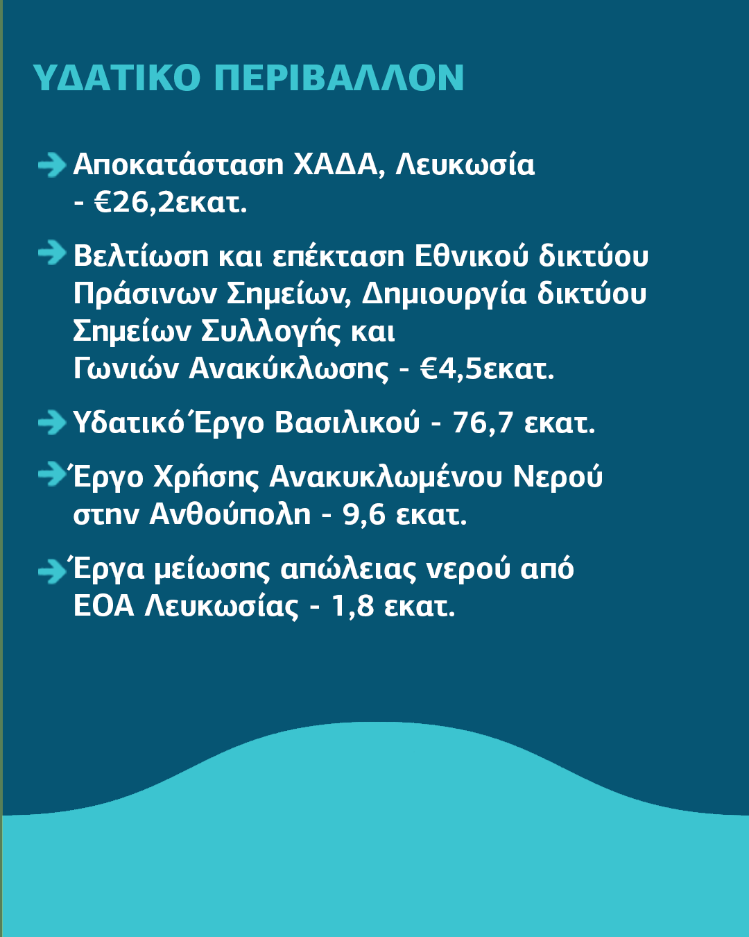 • Υδατικό έργο «Βασιλικός–Λευκωσία» (€76,7 εκατ.)