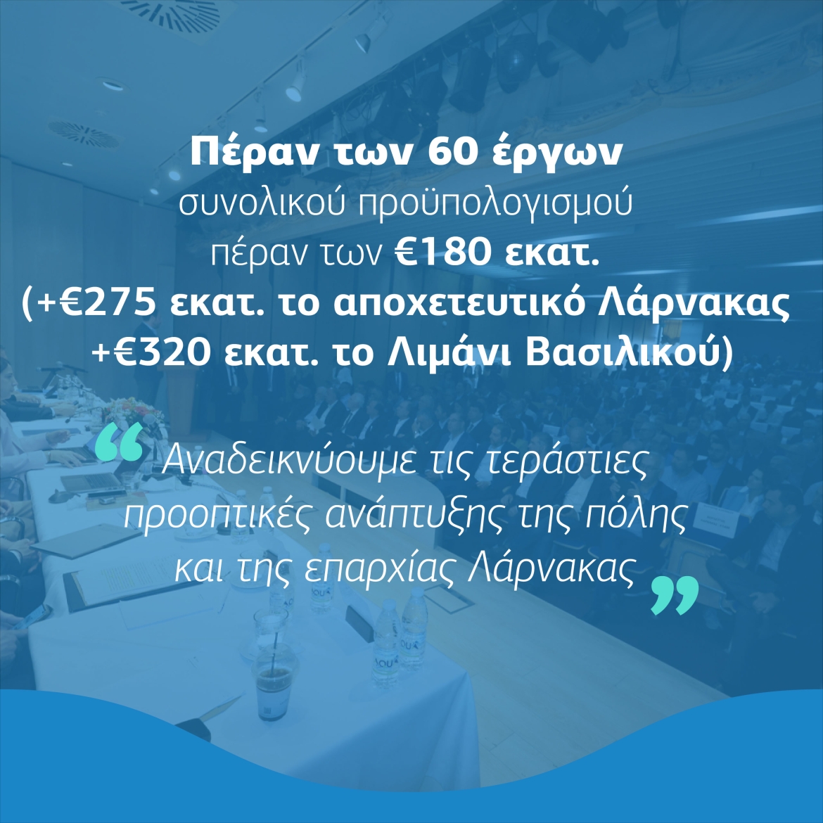 Πέραν των 60 έργων συνολικού προϋπολογισμού άνω των 180 εκατομμυρίων ευρώ για την Επαρχία Λάρνακας