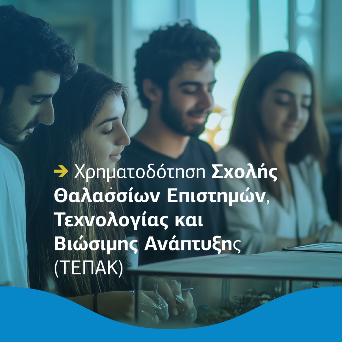 - Η ανέγερση της Σχολής Θαλασσίων Επιστημών, Τεχνολογίας και Βιώσιμης Ανάπτυξης του ΤΕΠΑΚ στη Λάρνακα, με προϋπολογισμό 16,4 εκατ. ευρώ και έναρξη λειτουργίας το 2027.